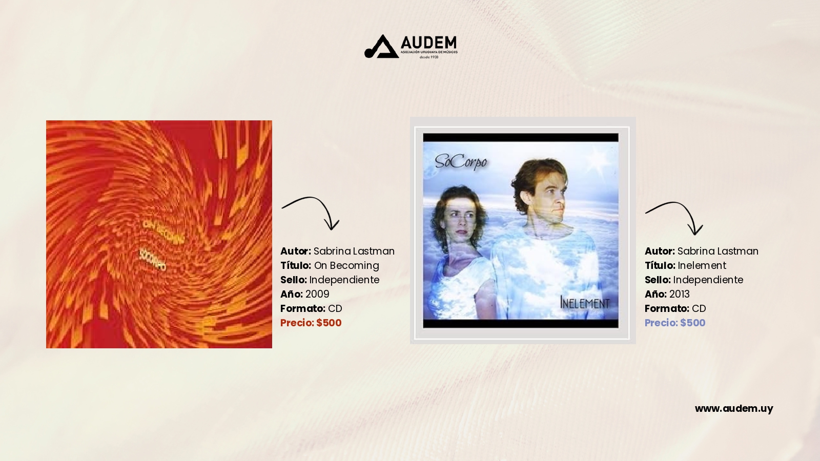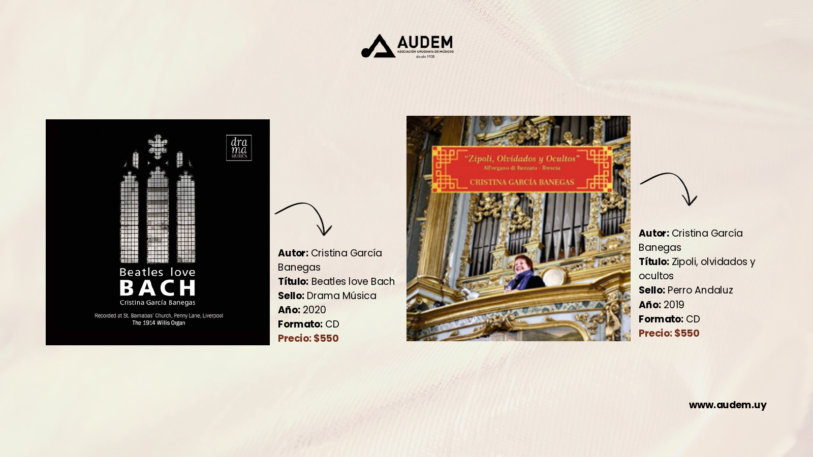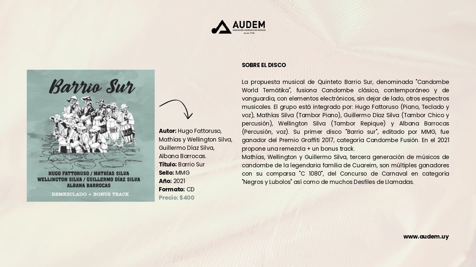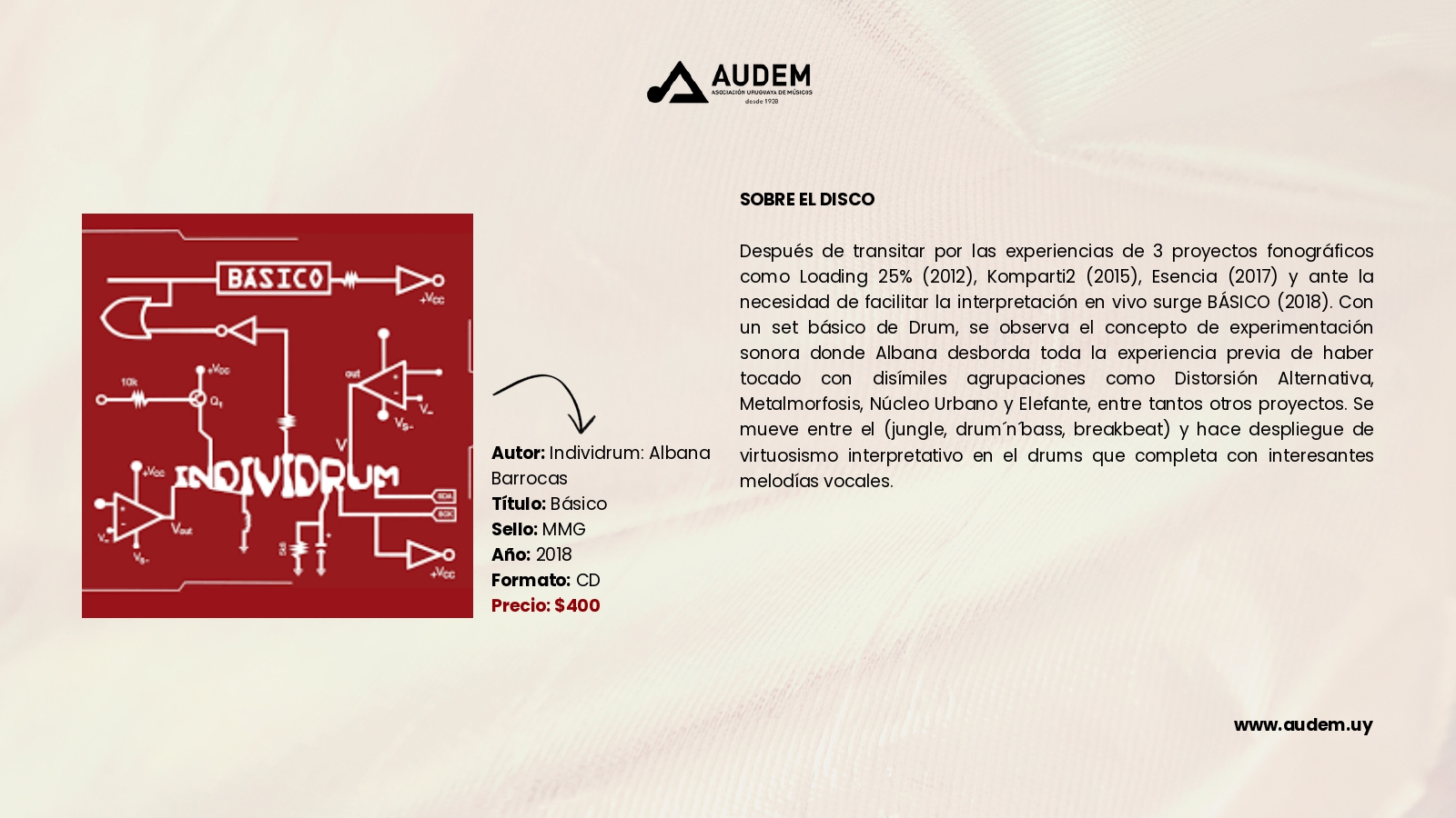 Catálogo Autor de la entrada:cmdadmin Publicación de la entrada:3 de noviembre de 2023 Categoría de la entrada:Catálogo Comentarios de la entrada:Sin comentarios Discos Anterior Siguiente Estos son todos los discos que podrás encontrar en AUDEM Libros Anterior Siguiente Comparte esto Compartir este contenido Se abre en una nueva ventana Se abre en una nueva ventana Se abre en una nueva ventana Deja una respuesta Cancelar la respuestaComentarioIntroduce tu nombre o nombre de usuario para comentar Introduce tu dirección de correo electrónico para comentar Introduce la URL de tu web (opcional) Guarda mi nombre, correo electrónico y web en este navegador para la próxima vez que comente.