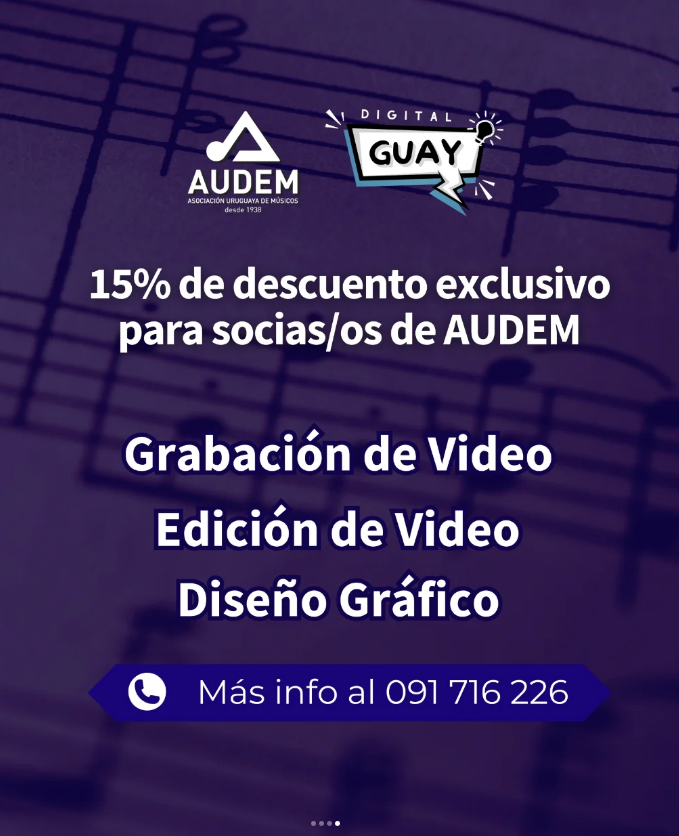 Les compartimos la propuesta de convenio entre AUDEM y Digital Guay, a través de la cual los socios podrán acceder a descuentos exclusivos en servicios de producción audiovisual y diseño gráfico, herramientas clave para potenciar su imagen y llegar a más público.